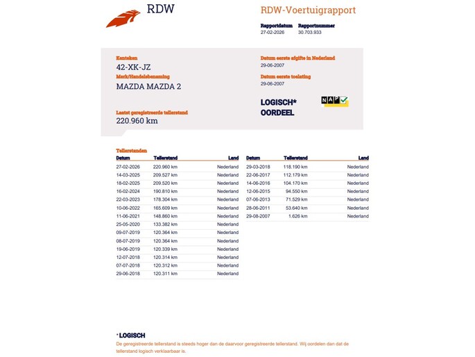 Kilometerstand gecontroleerd