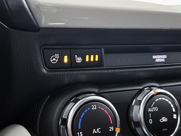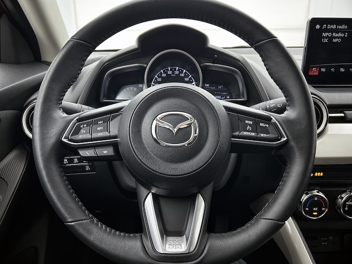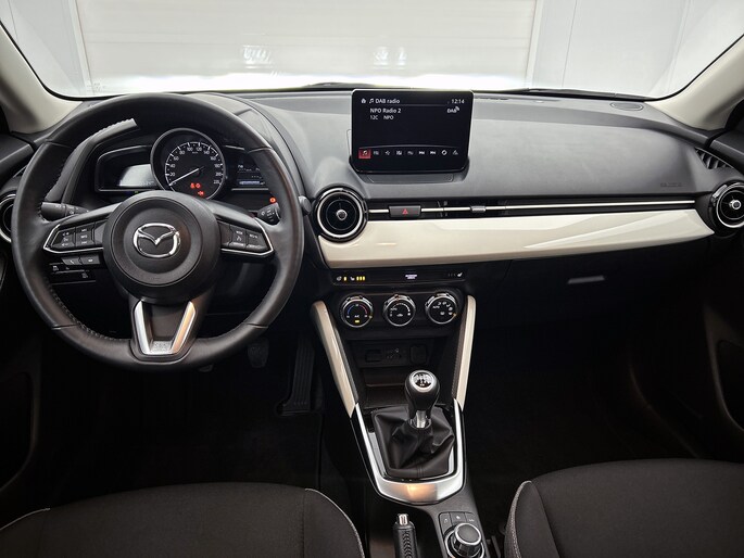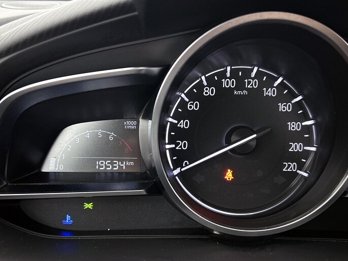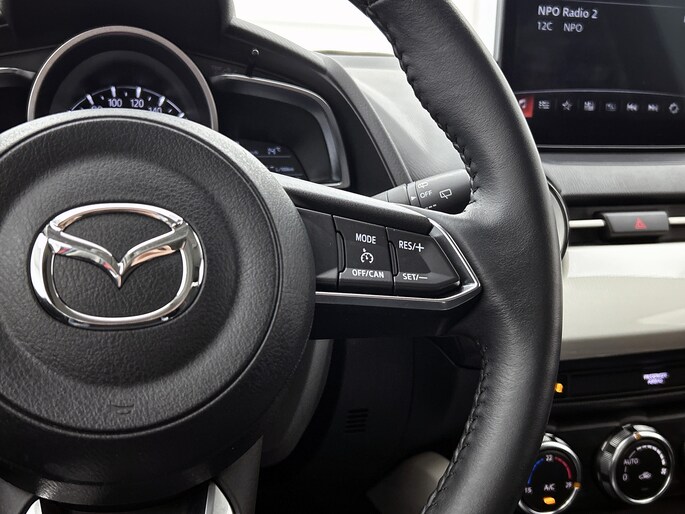 De achteruitrijcamera levert eersteklas parkeerservice. Je weet precies hoeveel ruimte je nog hebt, in beeld en geluid. Radarsensoren aan de achterkant van de auto zorgen voor een achteropkomend verkeer waarschuwing als de afstand tot het verkeer achter te klein wordt. Dankzij automatische airconditioning is het interieur behaaglijk warm of verfrissend koel. Audiobediening op het stuur is aanwezig. Gemak en veiligheid voor alles, toch? Voor storingvrije digitale radio-ontvangst zorgt de DAB-ontvanger. Met regensensor, cruise control, keyless entry, automatisch dimmende binnenspiegel, boordcomputer en lederen versnellingspook is deze Mazda helemaal compleet.