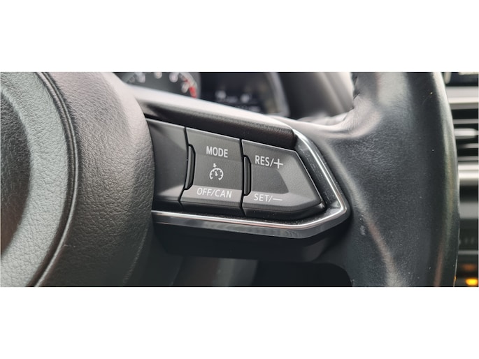 Zoals u mag verwachten van deze Mazda 3 is hij uitgerust met een reeks aan actieve veiligheidssystemen. Belangrijk voor uw veiligheid en die van uw passagiers is de verkeersbord-detectie in deze auto. De forward collision warning reduceert het gevaar van een botsing met een voorligger significant. Dankzij veiligheidsvoorzieningen als head-up display, dodehoekdetectie, hill hold functie, brake assist en bandenspanningcontrolesysteem, bent u steeds veilig onderweg.