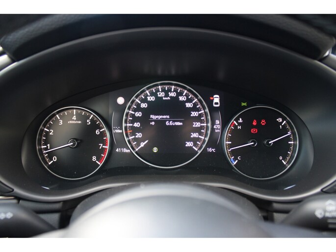 Onder de motorkap vind je Mazda’s nieuwste trots: een 140 pk sterke mild-hybride benzinemotor. Deze gloednieuwe 2.5-liter krachtbron is niet alleen lekker vlot, maar ook schoner én zuiniger dan de vorige 2.0. Of je nu de stad doorkruist of de snelweg pakt, deze auto laat je elke rit met een glimlach achter het stuur zitten.