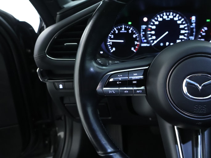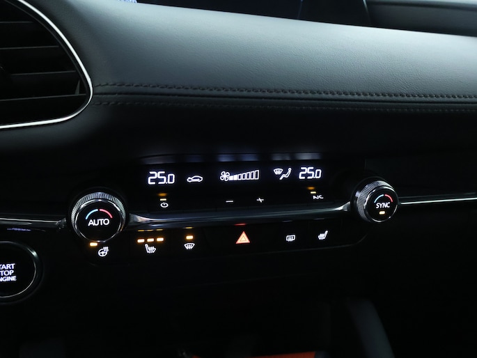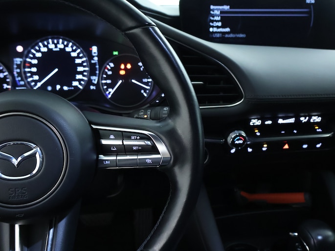 De automatische veiligheidssystemen in deze Mazda fungeren als een extra paar ogen. En dat niet alleen, ze kunnen ook actief ingrijpen, om zo jou en jouw passagiers te beschermen. Je verliest de weg geen seconde uit het oog. De dashboardinfo wordt in je zichtveld geprojecteerd door de head-up display. In het instrumentarium laat de verkeersborddetectie de actuele verkeersborden zien. Deze Mazda 3 is ook behulpzaam als het gaat om een rechte koers. Het Lane-keeping systeem signaleert en corrigeert als je onbedoeld de rijstrooklijnen dreigt te overschrijden. Ook helpen het dodehoekdetectie, forward collision warning system, hill hold functie, brake assist, vermoeidheidsherkenning en bandenspanningcontrolesysteem, jouw rit tot een veilige rit te maken.