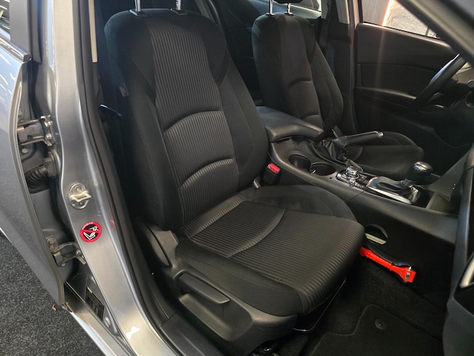 Alle technologie in de Mazda 3 is er op gericht om uw rit veilig en gemakkelijk te laten verlopen. De aandrijving van deze Mazda wordt verzorgd door een viercilinder motor en een automatische transmissie. U wordt in deze auto ook getrakteerd op 16 inch lichtmetalen velgen en verstelbare lendensteunen.
