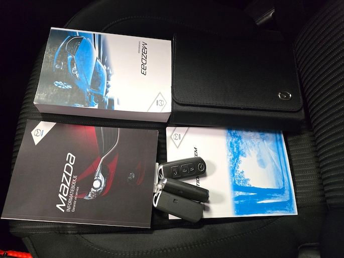 U verwacht natuurlijk automatische airconditioning in deze auto, en die is er dan ook. Ogen op de weg, handen aan het stuur. De audiobediening op het stuur zorgt dat u probleemloos schakelt tussen zenders. Ook op de korte stukken is de cruise control een uitkomst. Kijk maar bij de benzinepomp! Ook is de Mazda uitgerust met: automatisch dimmende binnenspiegel, lederen stuur, centrale deurvergrendeling met afstandsbediening en boordcomputer.