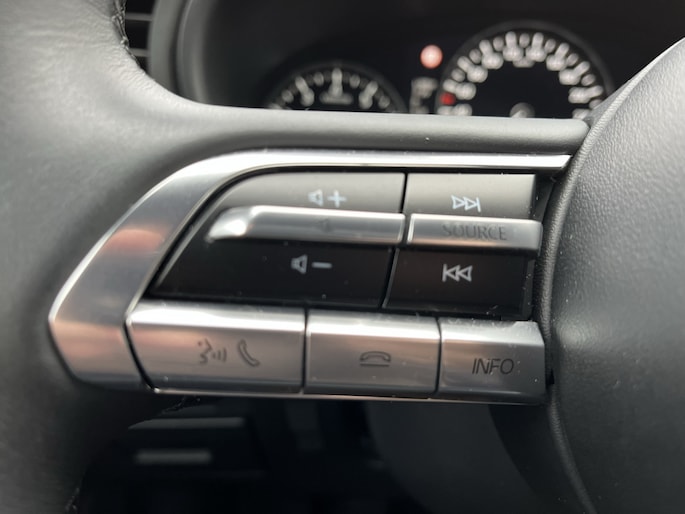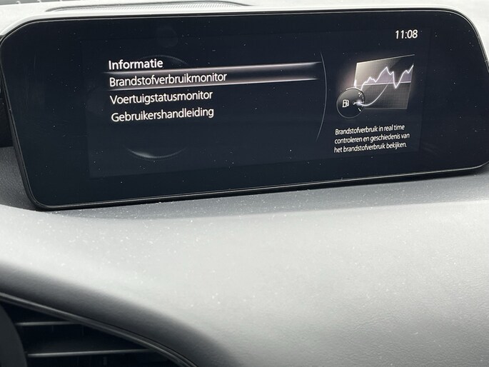 Punctueel onderhouden Mazda3 SkyActive-G Mild Hybrid in de extra complete Comfort uitvoering met o.a. Apple CarPlay, DAB+ radio, adaptieve cruise control, stoelverwarming, stuurverwarming en achteruitrijcamera.