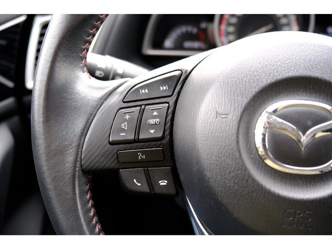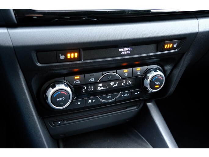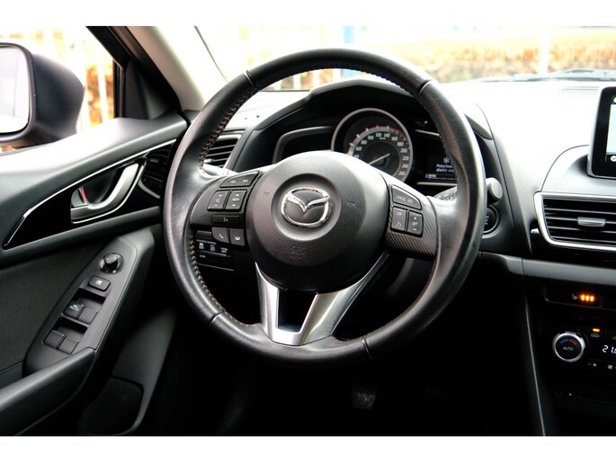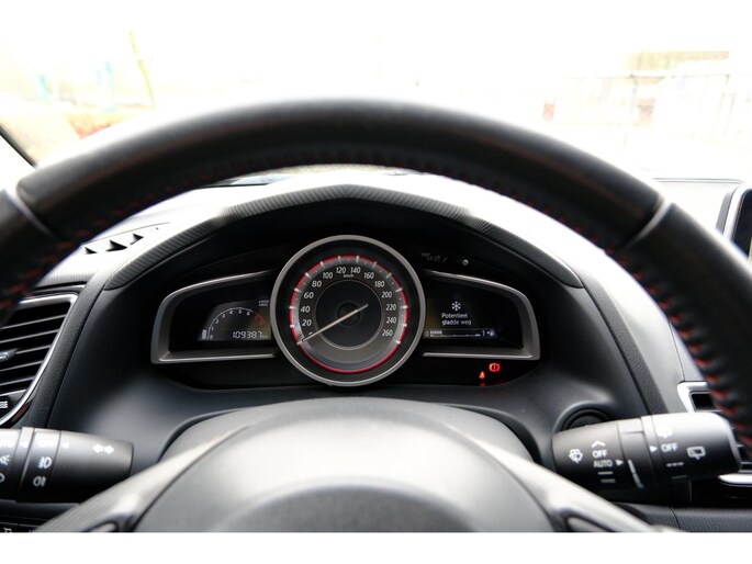 U kunt uw ogen op de weg houden, want het audiosysteem en het full map navigatiesysteem bedient u vanaf het stuurwiel. Het comfort wordt verhoogd door de aanwezige automatische airconditioning. De meeste schade bij inparkeren komt van een randje of paaltje dat u even niet zag. Maar de parkeersensoren zien alles en waarschuwen op tijd. Om de veiligheid onderweg te verhogen, heeft deze Mazda zowel een automatisch inschakelbare verlichting als een regensensor aan boord, zodat hij zelf de verlichting en de ruitenwissers kan inschakelen. Kleine ritjes, grote reizen - altijd een relaxte aankomst dankzij de cruise control. Met automatisch dimmende binnenspiegel, lederen stuur, centrale deurvergrendeling met afstandsbediening en boordcomputer is deze auto helemaal compleet.