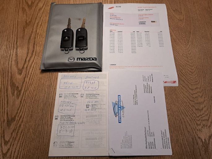 Degelijke Mazda 3! Fijne Japanse auto! Altijd prima onderhouden geweest bij de plaatselijke garage. De distributie is een ketting. De auto wordt geleverd met 2 sleutels, de boekjes en de Nationale Auto Pas.