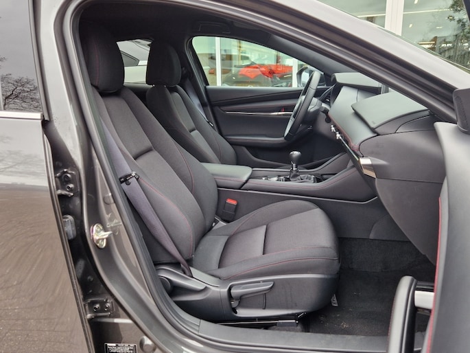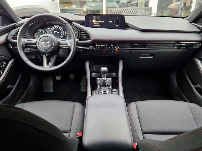 De LED koplampen van de Mazda 3 zorgen niet alleen voor een heldere verlichting, maar dragen ook bij aan de sportieve uitstraling van de auto. Bovendien zijn de buitenspiegels verwarmbaar, ideaal voor koude winterochtenden wanneer je snel de weg op moet. De dakspoiler maakt niet alleen een statement, maar verbetert ook de aerodynamica van de auto voor een nog soepelere rit.