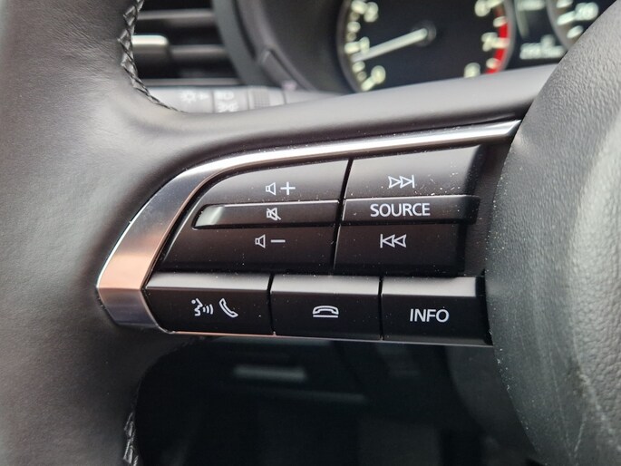 Een opvallende feature van deze Mazda 3 is de achteruitrijcamera. Dankzij deze handige optie kan je gemakkelijk manoeuvreren in krappe parkeerplekken en behoud je optimaal zicht op wat er achter de auto gebeurt. Daarnaast is het stuur multifunctioneel, wat betekent dat je met één druk op de knop toegang hebt tot diverse functies zonder je handen van het stuur te hoeven halen.
