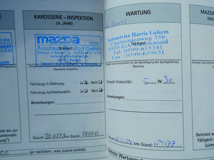 Onderhoudsboekjes: Aanwezig