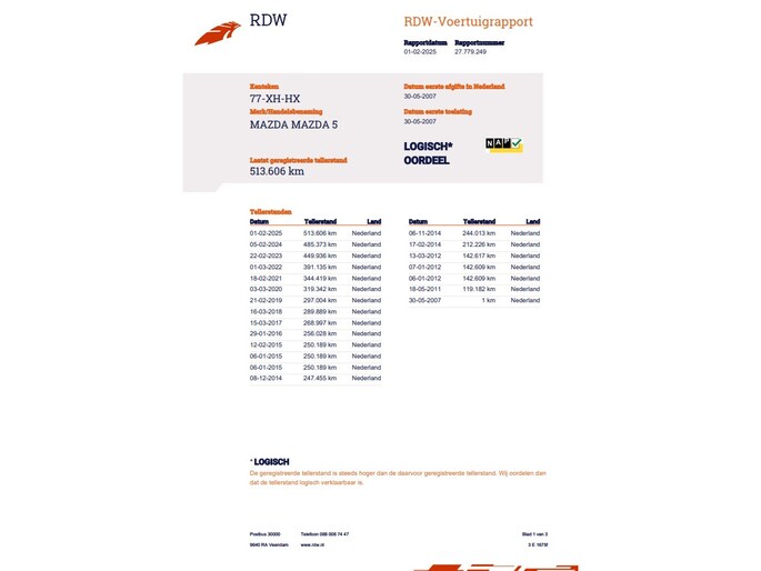 Kilometerstand gecontroleerd