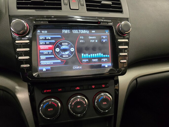 De Mazda 6 biedt een uitstekend rijcomfort dankzij functies zoals automatische airconditioning, cruise control, een verstelbare stuurkolom en stuurbekrachtiging. Geniet onderweg van je favoriete muziek dankzij de geïntegreerde radio-CD/MP3 speler. De veiligheid is uitstekend verzorgd met onder andere ABS, ESP, hoofdairbags voor en achter, zijairbags en een elektronische remkrachtverdeling. Bovendien zijn elektrisch bedienbare ramen, buitenspiegels en centrale vergrendeling met afstandsbediening standaard inbegrepen.