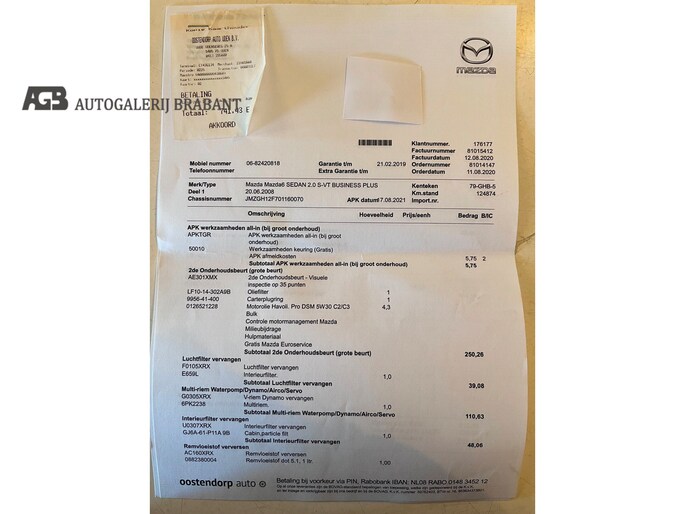 Wij bieden u aan een Mooie Mazda 6 2.0 S-VT uit het jaar 2008 met een nieuwe apk en een origineel km stand. De auto is goed onderhouden onlangs op 29-10-2025 Grote beurt gekregen.