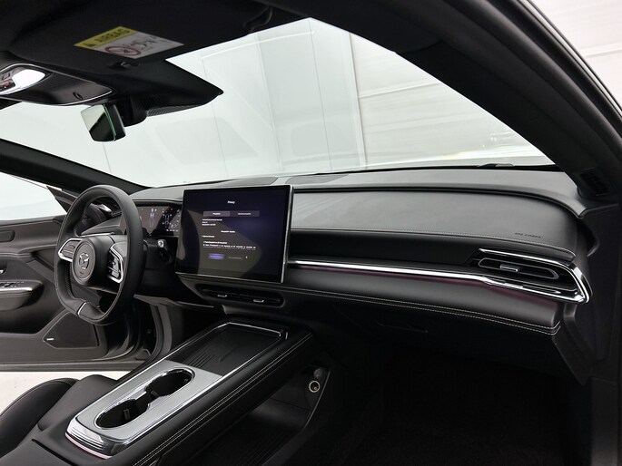Met het digitale dashboard van deze auto is de aanpassing van jouw cockpitinterface een fluitje van een cent. Dankzij de 360 graden camera op de auto, wordt manoeuvreren in smalle straatjes ineens veel eenvoudiger. Adaptive cruise control houdt de ingestelde snelheid vast en houdt afstand tot het voertuig voor je. In de file rijden vreet concentratie. Daarom komt de file assistent te hulp om veilig afstand te houden en automatisch te stoppen als je voorligger stilstaat. Het infotainmentaanbod is zeer uitgebreid. Ontspannen reizen doe je met behulp van het navigatiesysteem terwijl je muziek afspeelt via het audio-installatiesysteem met DAB-radio. Met dashboard met spraakbediening, electronic climate control, draadloos opladen, keyless entry, automatisch dimmende binnenspiegel en bagage afdekhoes is deze Mazda helemaal compleet.