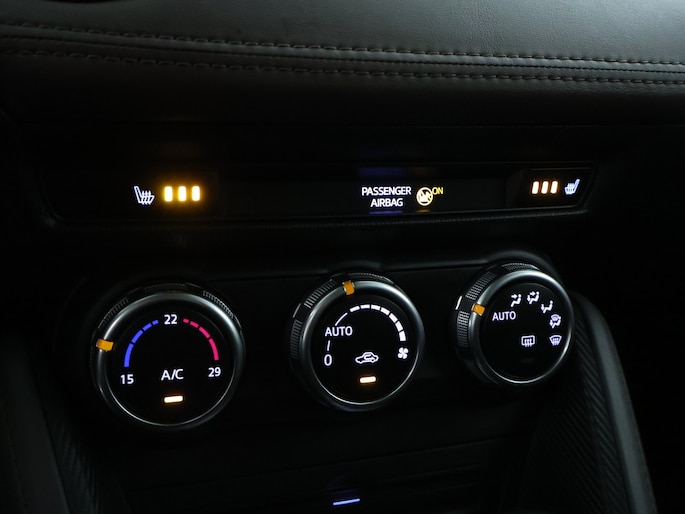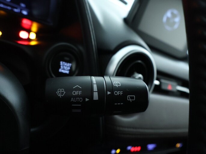 Een vergeten muurtje, een verborgen paaltje? Dat gebeurt niet meer, dankzij de achteruitrijcamera. Een goede veiligheidsvoorziening is de spraakbediening en stuurbediening voor belangrijke functies. De auto is natuurlijk voorzien van een full map navigatiesysteem en het audiosysteem biedt glasheldere geluidskwaliteit dankzij DAB-ontvangst. Automatische airconditioning verwarmt of koelt het interieur met een druk op de knop. De auto neemt je werk uit handen doordat hij zelf veel in de gaten houdt. Een regensensor en een automatisch inschakelbare verlichting nemen waar wanneer de ruitenwissers en het licht aan moeten. Voorzien van cruise control, dus vriendelijk voor de inzittenden én de benzinetank. Ook is de Mazda uitgerust met: keyless entry, centrale deurvergrendeling met afstandsbediening, boordcomputer en verstelbaar stuur.