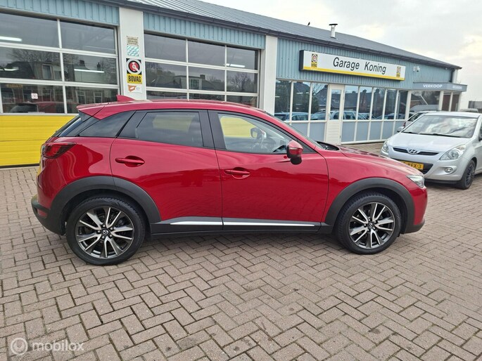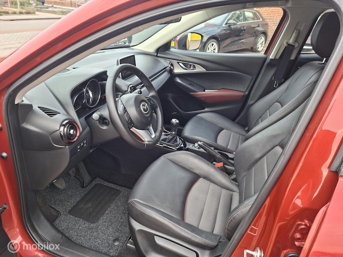 Dit is een auto die is ontworpen voor uw comfort. Deze Mazda CX-3 is van het bouwjaar 2016. In deze auto vindt u een benzinemotor en een handgeschakelde versnellingsbak. Lederen bekleding is in deze rijk uitgeruste auto ook aanwezig. Ga samen met uw bijrijder lekker zitten in de verwarmbare voorstoelen. Verder is de Mazda uitgerust met: 18 inch lichtmetalen velgen, LED koplampen, halflederen bekleding, dakspoiler, donker getint glas achter en in delen neerklapbare achterbank.