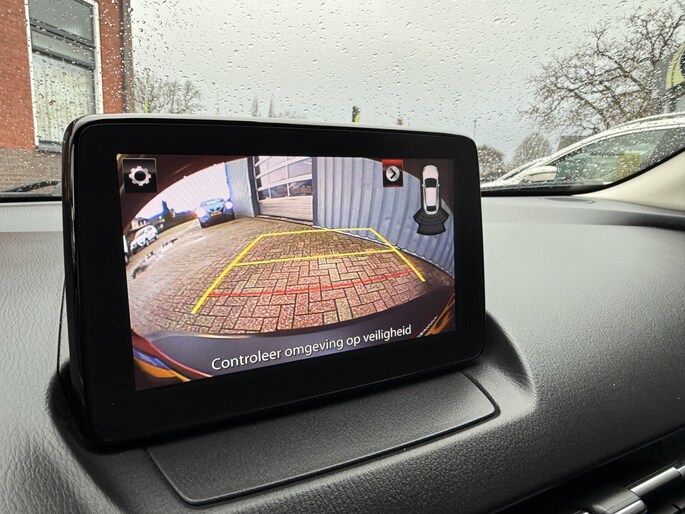 Een onopvallend paaltje of een overstekend kind achter de auto brengt risico's met zich mee. Gelukkig laat de achteruitrijcamera feilloos zien of alles veilig is. Adaptive cruise control houdt de ingestelde snelheid vast en houdt afstand tot het voertuig voor u. De radio harder of zachter zetten of iemand uit uw contactenlijst bellen. Dankzij de spraakbediening doet u dit allemaal met uw stem. Het high performance audiosysteem staat garant voor een levendige en krachtige muziekweergave. Je weet altijd waar je moet zijn, dankzij het full map navigatiesysteem. De Mazda is standaard voorzien van: kruisend verkeer detectie, automatische airconditioning, schakelpaddles aan het stuur, DAB ontvangst, regensensor en keyless entry.