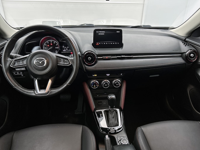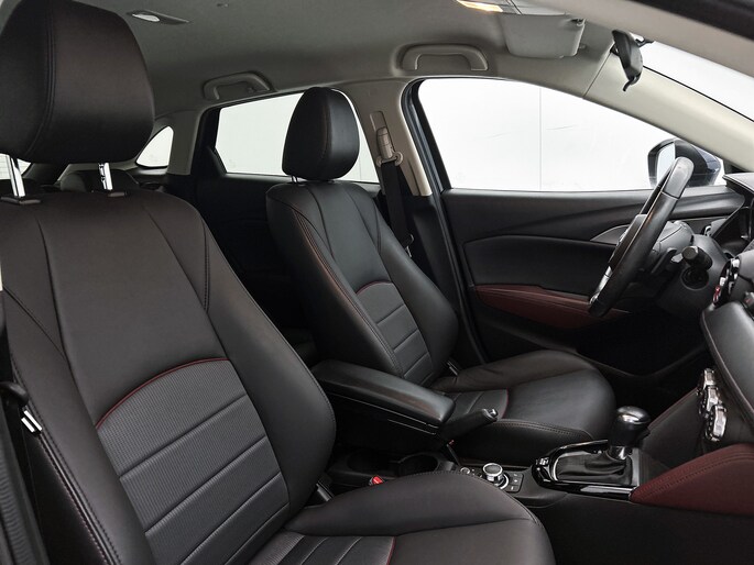 Een rit met de Mazda CX-3 is telkens weer een feestje, en dankzij zijn rijcomfort stappen jou en jouw passagiers na iedere rit verkwikt weer uit. De kilometerstand van deze dealeronderhouden auto is laag, slechts 32440. De auto is van bouwjaar 2018. De aandrijving van deze Mazda wordt verzorgd door een viercilinder benzinemotor en een automatische transmissie. Behaaglijk onderweg zijn? Als bestuurder geniet je van de verwarmbare voorstoelen. Net als je bijrijder! Bij de uitrusting van deze auto horen onder meer 18 inch lichtmetalen velgen, LED koplampen, halflederen bekleding, dakspoiler, donker getint glas achter en in delen neerklapbare achterbank.
