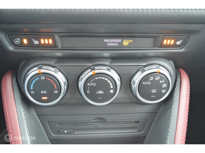 In de Mazda CX-3 heeft uw veiligheid en die van uw omgeving prioriteit. U rijdt ook veiliger omdat deze auto voor u de verkeersborden langs de weg kan lezen. De belangrijkste borden worden op uw instrumentarium geprojecteerd, zodat u ze niet kunt missen. Deze Mazda CX-3 is ook behulpzaam als het gaat om een rechte koers. Het Lane-keeping systeem signaleert en corrigeert als u onbedoeld de rijstrooklijnen dreigt te overschrijden. Een belangrijke bijdrage aan de veiligheid in deze auto is de vermoeidheidsherkenning, die waarneemt wanneer de bestuurder tekenen van vermoeidheid vertoont. Bovenop deze veiligheidsfeatures heeft deze Mazda bovendien head-up display, dodehoekdetectie, hill hold functie, brake assist en bandenspanningcontrolesysteem.