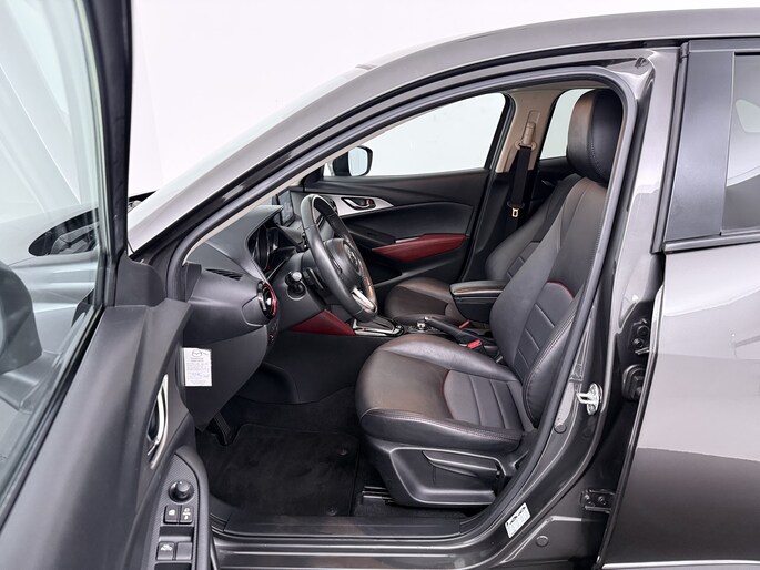 Vijf deuren bieden ruim toegang tot deze riante gezinsauto, deze Mazda CX-3 uit 2018 heeft 141575 kilometer op de teller staan. Een benzinemotor en een automatische transmissie zorgen dat jij met deze SUV prima vooruitkomt. Ga samen met je bijrijder lekker zitten in de verwarmbare voorstoelen. Ook 18 inch lichtmetalen velgen, LED koplampen, halflederen bekleding, dakspoiler, donker getint glas achter en in delen neerklapbare achterbank zijn aan boord.