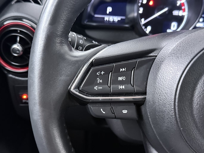 De achteruitrijcamera geeft je duidelijk zicht op de ruimte achter de auto. De meest gebruikte voertuigfuncties laten zich met behulp van jouw stem bedienen. Zuinig, veilig en ontspannen op pad: dat kan dankzij het aanwezige full map navigatiesysteem. Omdat je nu eenmaal niet overal ogen hebt, is deze Mazda CX-3 voorzien van een achteropkomend verkeer waarschuwing die registreert wanneer de afstand tot je achterligger te krap is. De automatische airconditioning zorgt voor een prettige binnentemperatuur. De Mazda is standaard voorzien van: schakelpaddles aan het stuur, DAB ontvangst, regensensor, cruise control, keyless entry en boordcomputer.
