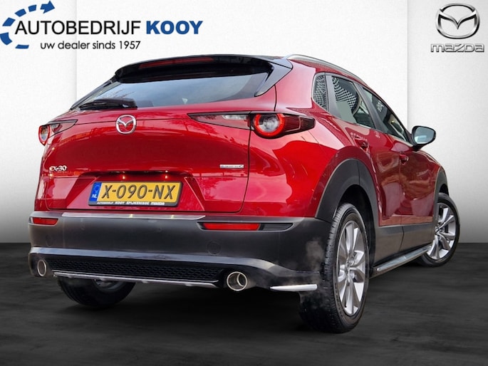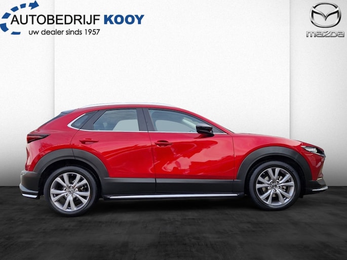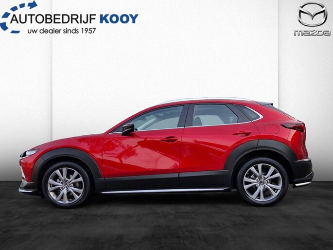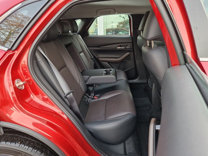 Met zijn stoere SUV carrosserie en metallic rode lak is deze Mazda CX-30 een echte blikvanger op de weg. Of je nu naar je werk rijdt, de kinderen naar school brengt of op avontuur gaat in het weekend, deze auto staat altijd voor je klaar.