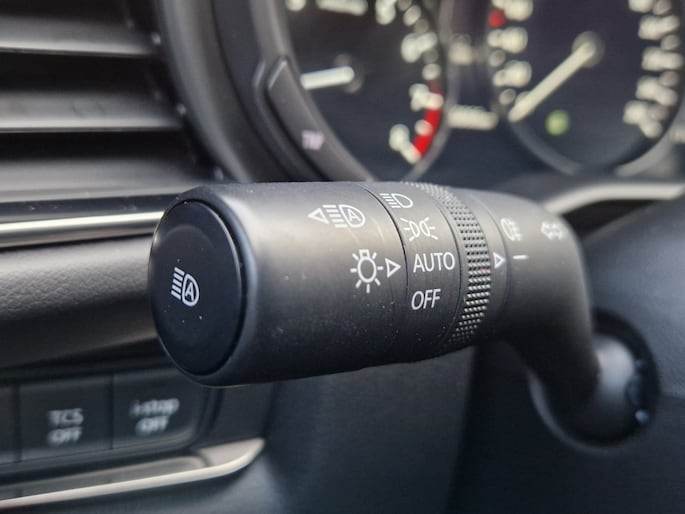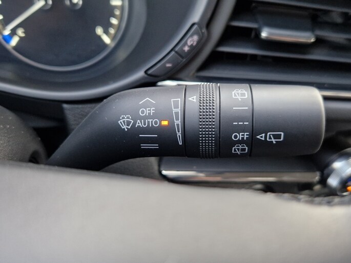 De buitenspiegels van de Mazda CX-30 zijn automatisch dimmend, wat zorgt voor optimaal zicht, zelfs 's nachts. Daarnaast is de auto uitgerust met regensensor, waardoor de ruitenwissers automatisch geactiveerd worden wanneer het begint te regenen. Geen gedoe meer met handmatig instellen, de auto regelt het allemaal voor je.