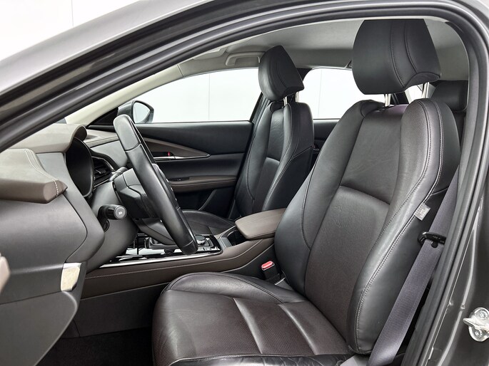 Laat je niets wijsmaken, deze Mazda CX-30 biedt alles wat jij van een auto verlangt. Deze auto komt uit 2019. Deze Mazda CX-30 is voorzien van een hybride motor. Dat betekent dat de aandrijving wordt geleverd door zowel een brandstofmotor als een elektromotor, die slim samenwerken om zuinig over de weg te gaan. Gemakkelijk in- en uitladen? Geen enkel probleem met de elektrisch bedienbare achterklep. En ook het stijlvolle comfort is meegeleverd dankzij het lederen interieur. Ervaar de weldadige warmte van de inschakelbare stoelverwarming. Bij de uitrusting van deze Mazda horen onder meer 18 inch lichtmetalen velgen, LED koplampen, dakspoiler, in delen neerklapbare achterbank en LED-achterlichten.
