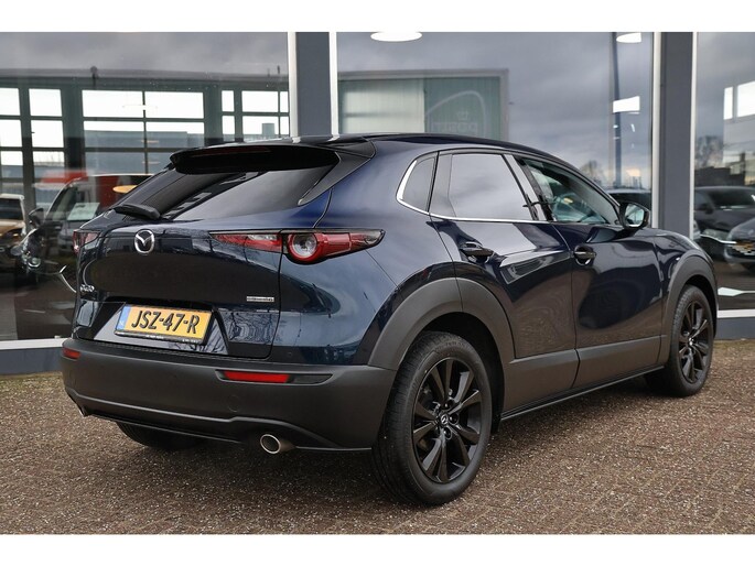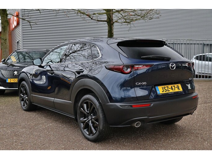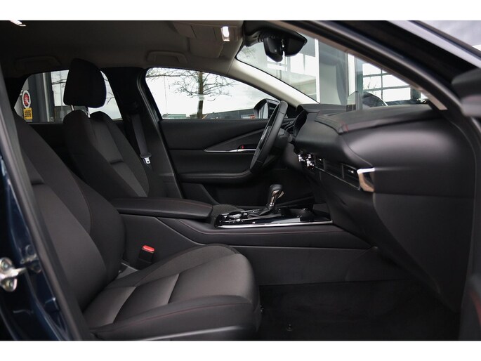 U rijdt gemakkelijk, comfortabel en zonder zorgen met deze Mazda CX-30. De aandrijving van deze Mazda wordt verzorgd door een viercilinder motor en een automatische transmissie. De verwarmbare voorstoelen zijn een heerlijke extra optie, waarmee u uzelf en uw bijrijder een groot plezier doet. Met een druk op de knop gaat de elektrische achterklep open. De uitmonstering van deze auto wordt gecompleteerd door onder meer 18 inch lichtmetalen velgen, LED koplampen, dakspoiler, extra getint glas en LED-achterlichten.