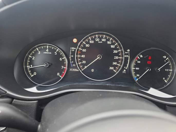 Hier kunt u genieten van een uitzonderlijk rijk interieur met lederen bekleding, een verwarmd stuurwiel, elektrisch verstelbare bestuurdersstoel met geheugenfunctie en een premium audiosysteem. De Mazda biedt veiligheid en gemak met functies zoals adaptieve cruise control, parkeersensoren voor en achter, een achteruitrijcamera, dodehoekdetectie, vermoeidheidsherkenning en een rijstrooksensor met correctie. Met Apple Carplay, Android Auto en een full map navigatiesysteem bent u altijd verbonden en georiënteerd. Het comfort wordt gecompleteerd door automatische airconditioning, een head-up display en extra getint glas achter.