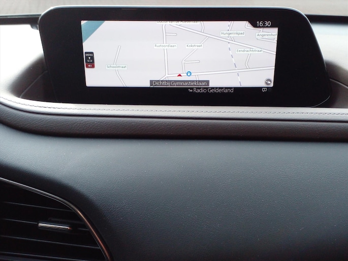De nieuwste veiligheidssystemen komen in deze MAZDA Cx-30 samen. De camera van de verkeersborddetectie herkent verschillende soorten verkeersborden en toont deze op het dashboard. Actieve dodehoekdetectie geeft een waarschuwingssignaal wanneer een ander voertuig in uw dode hoek rijdt. Dit verkleint de kans op een aanrijding. Ook helpen het head-up display, driver alert systeem, hill hold functie, advanced smart city brake support met voetgangersherkenning en bandenspanningcontrolesysteem, uw rit tot een veilige rit te maken.