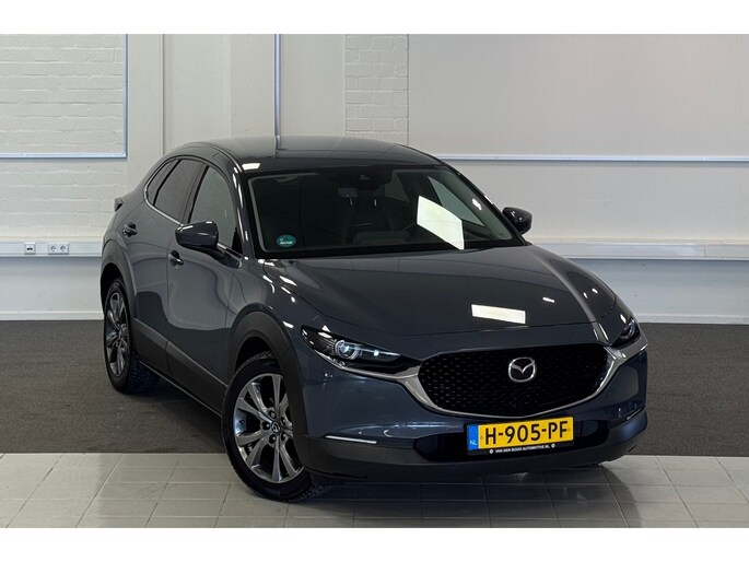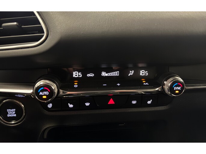 Zoals u mag verwachten van deze Mazda CX-30 is hij uitgerust met een reeks aan actieve veiligheidssystemen. Bij de veiligheidssystemen van deze Mazda hoort ook de verkeersbord-detectie. Die leest tijdens het rijden als het ware met u mee en attendeert u op de significante verkeersborden langs en boven de weg. Een camera houdt de juiste koers binnen de rijstrook in de gaten en het Lane-keeping systeem corrigeert bij afwijkingen. De sensor van het forward collision warning-systeem registreert permanent de afstand tot voorliggers en grijpt in als een botsing dreigt. Verder is deze auto uitgerust met head-up display, dodehoekdetectie, accident avoidance system, hill hold functie, brake assist en vermoeidheidsherkenning.