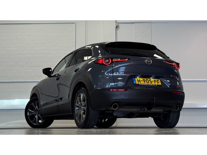 De Japanse automerken hebben in de loop van de jaren verschillende keren nieuwe maatstaven gezet als het gaat om kwaliteit en functionaliteit. Dat merkt u ook aan deze Mazda CX-30. Een viercilinder motor en een automatische transmissie zorgen voor de uitstekende prestaties van deze auto. Het lederen interieur voegt stijl en allure toe. Lekker hoor, die verwarmbare voorstoelen. Helemaal op koude dagen. De elektrisch bedienbare achterklep opent met een druk op de knop. Geen gekleum meer in de koude dagen. Het verwarmd stuurwiel voelt als een weldaad na het ijskrabben. In deze Mazda profiteert u onder andere ook van: 18 inch lichtmetalen velgen, LED koplampen, dakspoiler, extra getint glas, in delen neerklapbare achterbank en LED-achterlichten.