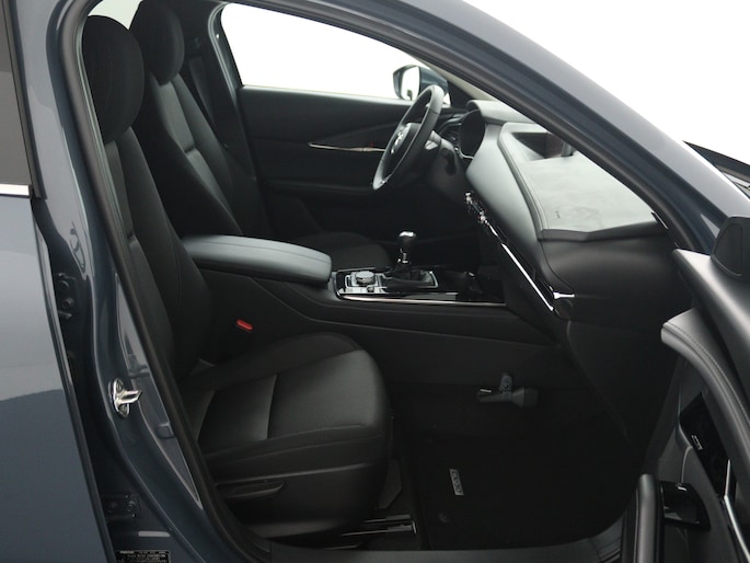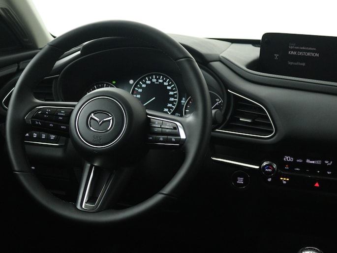 In de Mazda CX-30 heeft jouw veiligheid en die van jouw omgeving prioriteit. Je verliest de weg geen seconde uit het oog. De dashboardinfo wordt in je zichtveld geprojecteerd door de head-up display. In het instrumentarium laat de verkeersborddetectie de actuele verkeersborden zien. Voorzien van het Lane-keeping systeem. Ofwel: blijf automatisch in je baan. Verder is deze auto uitgerust met dodehoekdetectie, forward collision warning system, hill hold functie, brake assist, vermoeidheidsherkenning en bandenspanningcontrolesysteem.