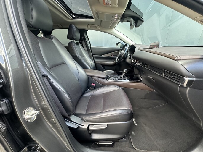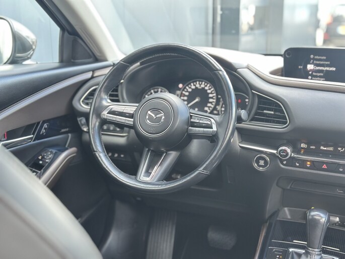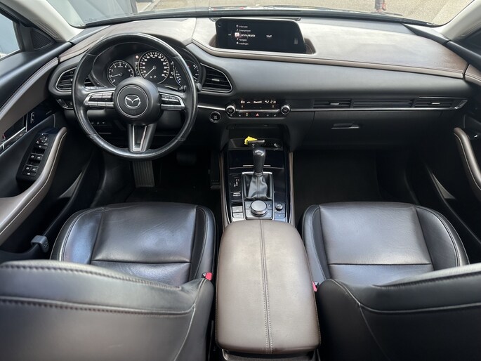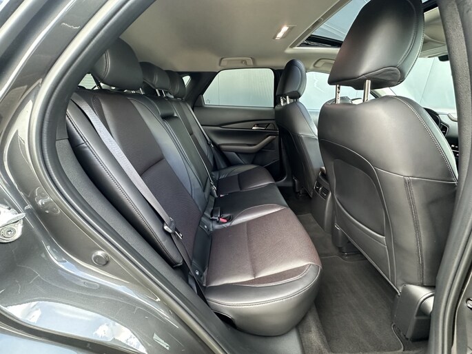 In het interieur van de Mazda CX-30 ervaar je ultiem comfort en gemak. Het multifunctionele stuur zorgt ervoor dat je alle belangrijke functies binnen handbereik hebt, zonder je ogen van de weg te halen. De armsteun voor biedt extra ondersteuning tijdens lange ritten, zodat je altijd ontspannen achter het stuur zit.