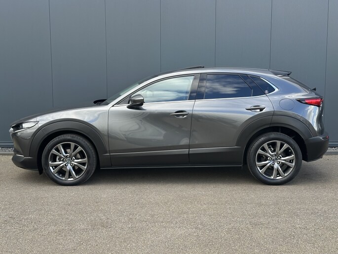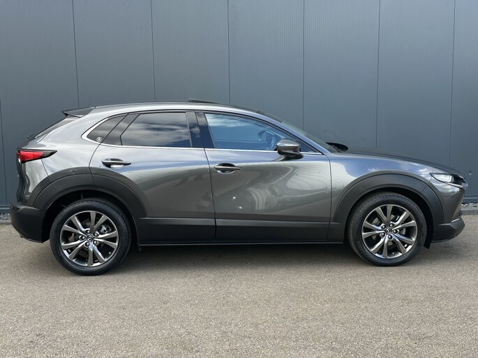 De luxe en sportieve Mazda CX-30 2.0 SkyActiv-X Luxury uit 2020 is een parel op de weg. Met zijn krachtige benzine motor van 180 PK rijdt deze SUV soepel en comfortabel door elke bocht. De grijze kleur in combinatie met de metallic lak geeft de auto een moderne en stijlvolle uitstraling, perfect voor elke gelegenheid.
