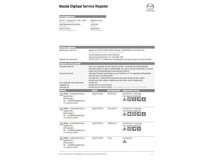 Neem vandaag nog contact op met Autobedrijf Kooy Spijkenisse B.V. op 0181-613544 voor meer informatie over deze prachtige Mazda CX-30 2.0 eSkyActiv-X Luxury met 360 camera, afneembare trekhaak en Carplay. Wij helpen u graag verder en staan klaar om al uw vragen te beantwoorden.