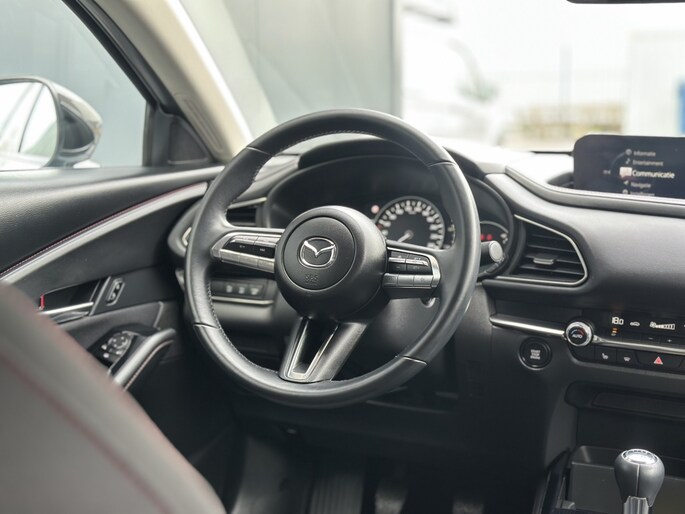 Het model beschikt over een benzine motor met een vermogen van 186PK, wat zorgt voor een indrukwekkende rijervaring. Met een cilinderinhoud van 1998CC biedt de Mazda CX-30 voldoende kracht en souplesse voor zowel stadse ritjes als lange afstanden. De cross-over heeft een ruim interieur met 5 deuren, waardoor instappen en uitstappen moeiteloos verloopt.