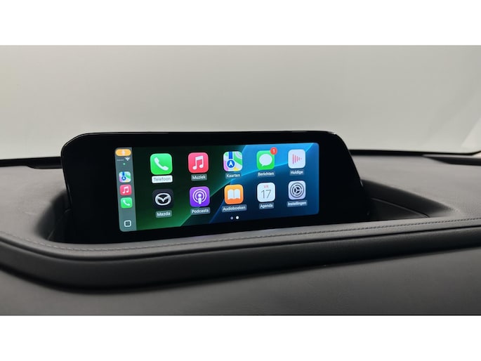Comfortabel en veilig achteruitrijden gaat gemakkelijker dan ooit met behulp van de achteruitrijcamera. Met adaptive cruise control houdt deze auto automatisch afstand tot uw voorligger. Vanaf elke plek contact maken met deze auto: dat kan met behulp van remote services, die u simpel activeert met uw smartphone. Gemakkelijk en veilig is de spraakbediening voor het audiosysteem en het full map navigatiesysteem. Daarbij kunt u deze ook bedienen met de knoppen op het stuur. De audio-kwaliteit is geweldig, dankzij de DAB-ontvangst. Natuurlijk is er ook automatische airconditioning aanwezig. U bent in deze Mazda ook voorzien van regensensor, keyless entry, automatisch dimmende buitenspiegels, lederen stuur, isofix-aansluiting en centrale portiervergrendeling.