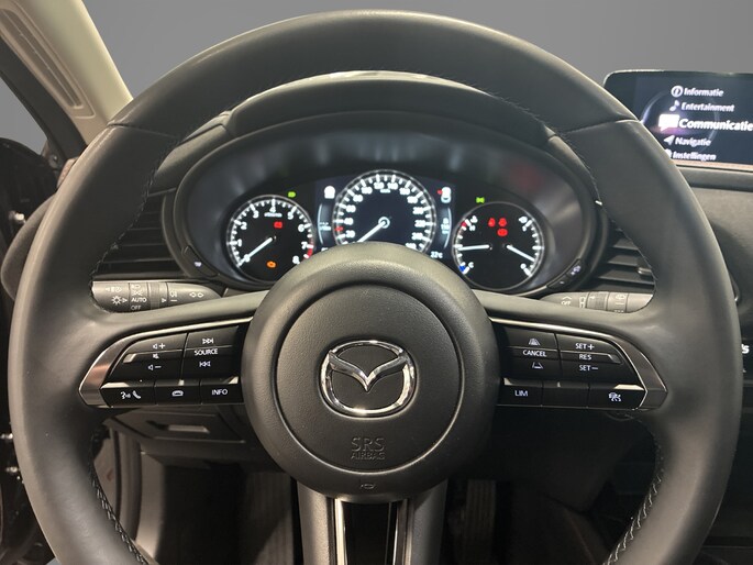 In de Mazda CX-30 heeft jouw veiligheid en die van jouw omgeving prioriteit. Blik op de weg houden? Je hoeft uw hoofd niet meer te draaien om het dashboard te zien, dankzij de head-up display. Een belangrijke bijdrage aan de veiligheid onderweg levert de verkeersbord-detectie. Met het Lane-keeping systeem kom je nooit per ongeluk buiten de rijstrook. De auto is ook uitgerust met dodehoekdetectie, forward collision warning system, hill hold functie, brake assist, vermoeidheidsherkenning en bandenspanningcontrolesysteem.