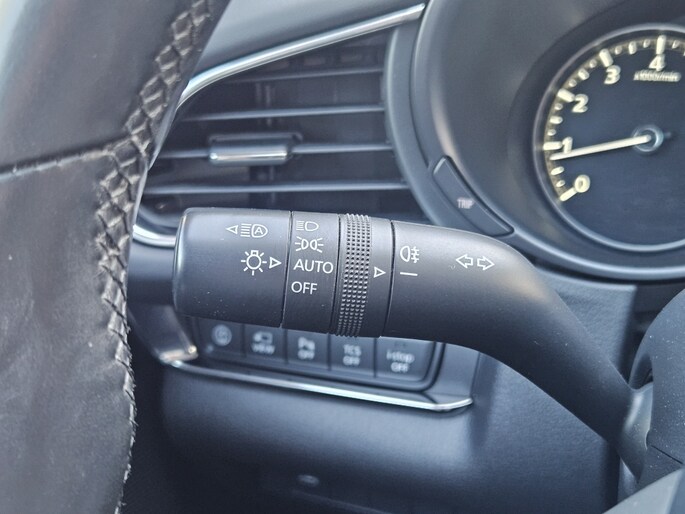 Het head-up display van deze Mazda CX-30 zorgt ervoor dat belangrijke informatie direct op de voorruit wordt geprojecteerd, waardoor je veilig en geconcentreerd kunt blijven rijden zonder je blik van de weg te hoeven halen. Het systeem van de grootlichtassistent zorgt ervoor dat je altijd optimaal zicht hebt op de weg doordat het automatisch schakelt tussen groot- en dimlicht, afhankelijk van het tegemoetkomend verkeer.