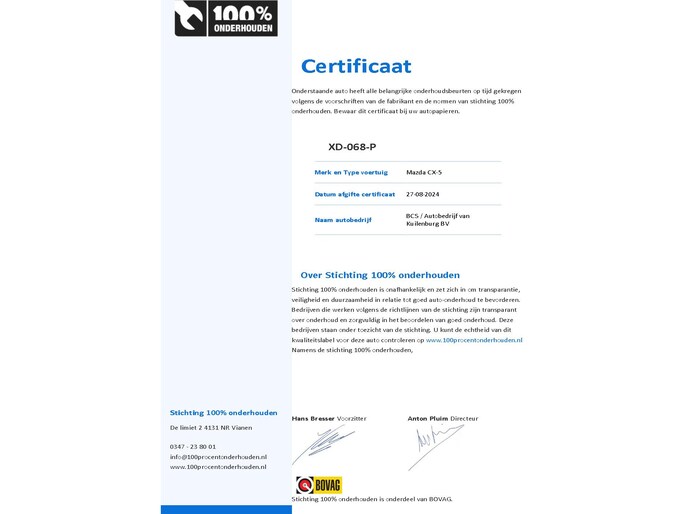 Dit afleverpakket bevat: BOVAG garantie (12 maanden); BOVAG 40-Puntencheck; BOVAG Afleverbeurt