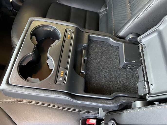 - Middenarmsteun achter met twee bekerhouders en twee USB-aansluitingen