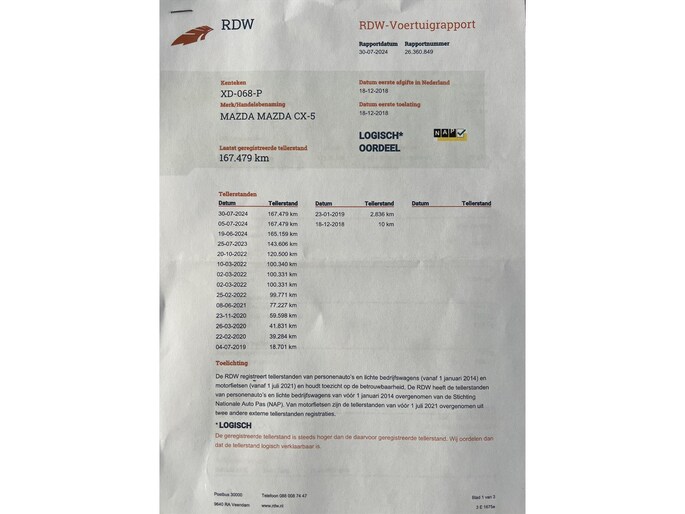 Kilometerstand gecontroleerd