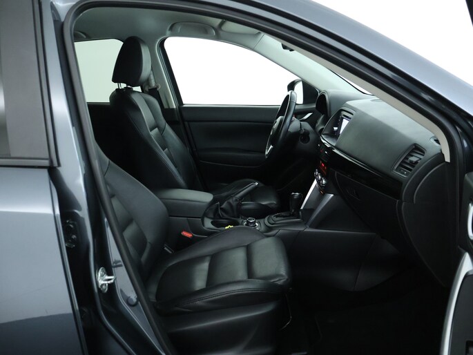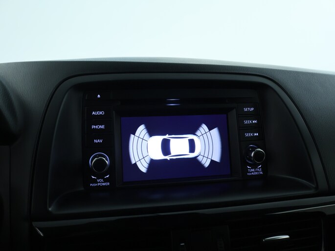 Pragmatisch en veilig als deze auto is, beschikt hij over diverse veiligheidssystemen. Het Lane-keeping systeem registreert permanent of je binnen de lijnen van de rijstrook blijft; dwaal je onbedoeld af, dan waarschuwt het systeem en corrigeert de koers. Een sterke optie van deze Mazda CX-5 is het bandenspanningscontrolesysteem. Veiligheid voorop! Een brug? Een schuine oprit? De hill hold control kan elke helling moeiteloos aan. Bovenop deze veiligheidsfeatures heeft deze Mazda bovendien dodehoekdetectie en autonoom remsysteem.