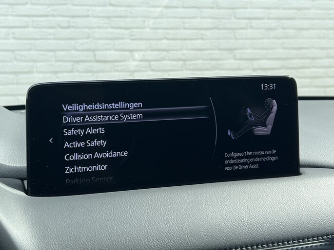 Elektronische veiligheidsvoorzieningen helpen u onderweg om de situatie op de weg te beoordelen. Deze systemen waarschuwen u als er een riskante situatie ontstaat, en kunnen in bepaalde gevallen ook zelf ingrijpen. Eyes on the road! Dat kan iedere seconde, dankzij de head-up display, die informatie projecteert op de voorruit. Bij de veiligheidssystemen van deze Mazda hoort ook de verkeersbord-detectie. Die leest tijdens het rijden als het ware met u mee en attendeert u op de significante verkeersborden langs en boven de weg. Het Lane-keeping systeem doet precies wat nodig is: waarschuwen en corrigeren bij onbedoelde overschrijding van de rijstrooklijnen. Met voorzieningen als dodehoekdetectie, forward collision warning system, hill hold functie, brake assist, vermoeidheidsherkenning en bandenspanningcontrolesysteem, bent u altijd veilig onderweg.