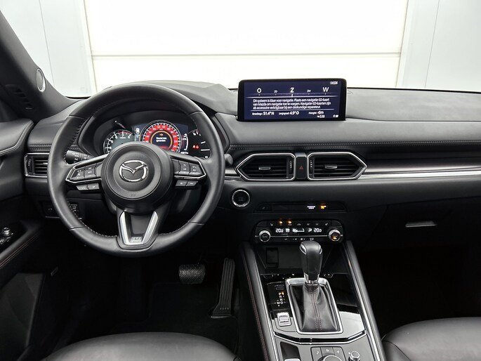 Met de 360 graden camera op deze auto wordt het rijden een heel stuk veiliger, dankzij het optimale zicht dat het biedt. Adaptive cruise control is veilig en comfortabel. De snelheidsregelaar houdt automatisch afstand tot het voertuig dat voor je rijdt. De ingebouwde file assistent is een echte helper als het vaststaat onderweg. Het systeem meet ruimte tot de auto vóór u permanent en activeert zelfs de remmen als je voorligger stopt. Veilig en comfortabel rijden wordt nog eens versterkt door Connected Services, zodat je diverse vitale functies van de auto altijd kunt checken in de app. De luidsprekers van het high performance audiosysteem omringen jou met een uitgebalanceerd geluid. Ook is de Mazda uitgerust met: dashboard met spraakbediening, full map navigatiesysteem, achteropkomend verkeer waarschuwing, electronic climate control, schakelpaddles aan het stuur en draadloos opladen.