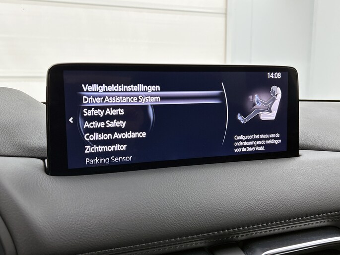 Deze Mazda is voorzien van verschillende intelligente veiligheidsvoorzieningen. Ze kijken tijdens het rijden als het ware met je mee, ze signaleren potentieel gevaarlijke situaties en in een aantal gevallen kunnen ze ook ingrijpen. Altijd je blik op de weg: met de head-up display hoef je geen moment je ogen te verplaatsen. De info wordt geprojecteerd in het zichtveld voor je. De actuele snelheidslimiet, een inhaalverbod en andere verkeersborden; de verkeersborddetectie ondersteunt je tijdens elke rit. Keep your lane? Het Lane-keeping systeem zorgt er automatisch voor. Met voorzieningen als dodehoekdetectie, forward collision warning system, hill hold functie, brake assist, vermoeidheidsherkenning en bandenspanningcontrolesysteem, ben je altijd veilig onderweg.