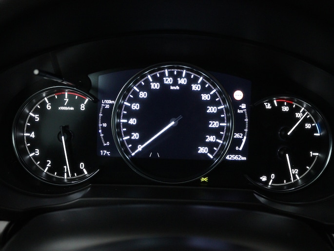 Deze Mazda biedt je niet alleen comfort en rijplezier, maar ook veiligheid. Actieve veiligheidssystemen houden voor jou de weg in de gaten en reageren op onvoorziene situaties voordat jij dat kunt. De head-up display projecteert alle gewenste dashboardinformatie op de juiste hoogte in de voorruit. Een belangrijke bijdrage aan de veiligheid onderweg levert de verkeersbord-detectie. Ongemerkt buiten de rijstrook raken? Nee hoor, het Lane-keeping systeem waarschuwt en corrigeert. Je bent mede dankzij driver alert systeem, actieve dodehoekdetectie, forward collision warning system, hill hold functie, brake assist en vermoeidheidsherkenning steeds veilig onderweg.