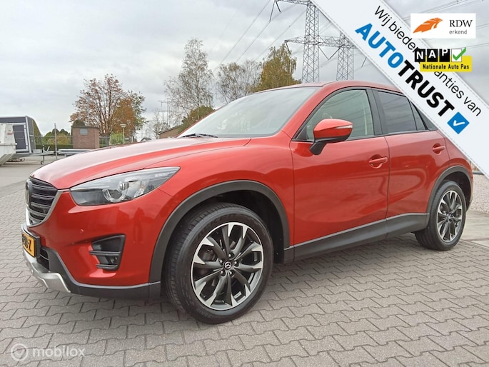 Uw nieuwe auto staat klaar voor vertrek. Stap gerust in, deze Mazda CX-5 heeft 125295 kilometer gelopen en is van het bouwjaar 2016. De aandrijving komt voor rekening van een benzinemotor en een automatische transmissie. Het lederen interieur voegt stijl en allure toe. Deze Mazda CX-5 heeft verwarmbare voorstoelen, voor zowel bestuurder als bijrijder. Wat een licht geeft dat glazen elektrisch bedienbare shuifdak. In deze auto profiteert u onder andere ook van: 19 inch lichtmetalen velgen, LED koplampen, donker getint glas achter, in delen neerklapbare achterbank, LED-achterlichten en verstelbare lendensteunen.