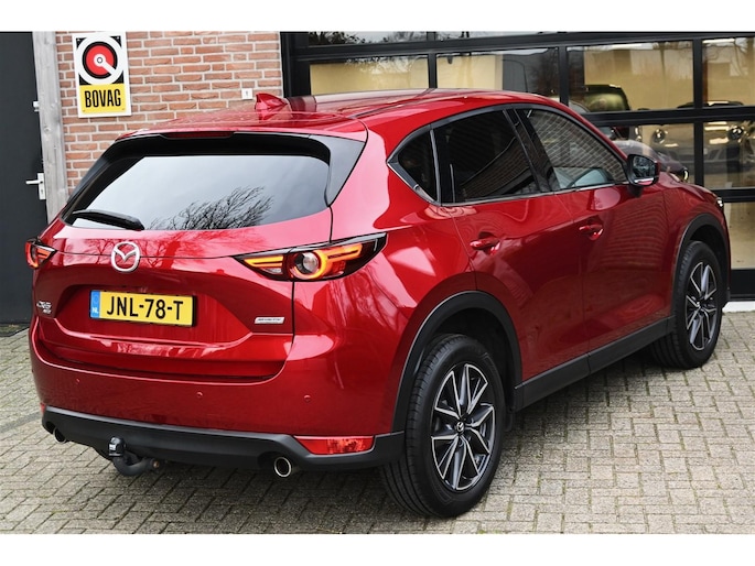 Chique en goed onderhouden Mazda CX-5 met sterke 2.5 benzinemotor met 194 pk. Ideale trekauto met een hele complete optielijst. Dealeronderhouden Mazda (t/m 11-2025 bij 72.000 km) afkomstig van 1e eigenaar. In bijzondere mooie rode 'echte Mazda' kleur Soul Red Metallic!